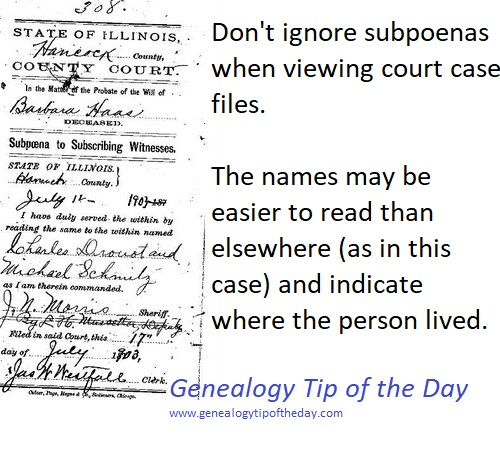 It can be tempting to ignore subpoenas in court records as “necessary details” that don’t warrant reading. That’s a mistake. Those slips of paper can provide significant details. In the United States, they should provide the jurisdiction where the individual was living (usually the county) which may not be the county in which the case was being heard.